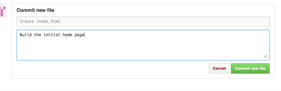 5 To style the content go back to your repository home and create a new file named css/main.css. The css/ before the filename will automatically create a subdirectory called css. Pretty neat.