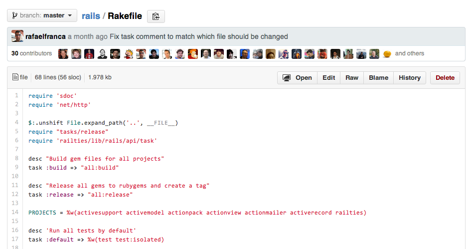 Usually, people just host the files that contain their code, so what you see on the end view is the actual code, as in this example from the Ruby on Rails project:
